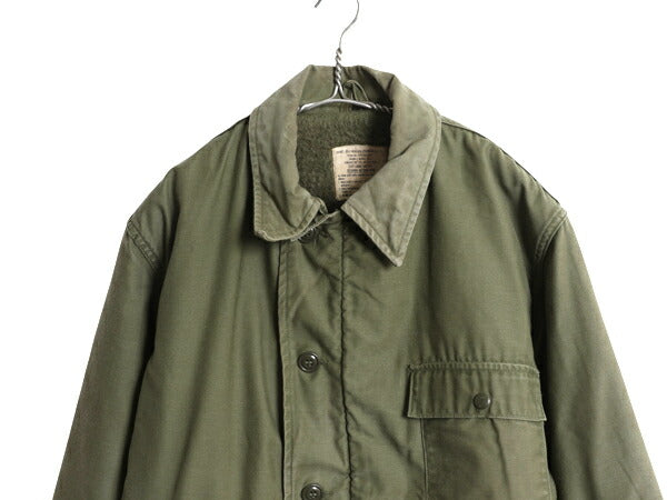 60s 米軍実物 USN ネイビー A-2 デッキ ジャケット メンズ L / 68年製 ヴィンテージ ミリタリー 軍物 裏ボア ライナー付き ブルゾン カーキ