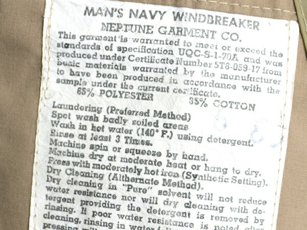 80s 米軍実物 USN ネイビー ウインドブレーカー ジャケット メンズ M 程 ヴィンテージ ミリタリー 軍物 無地 ジャンパー ブルゾン ベージュ
