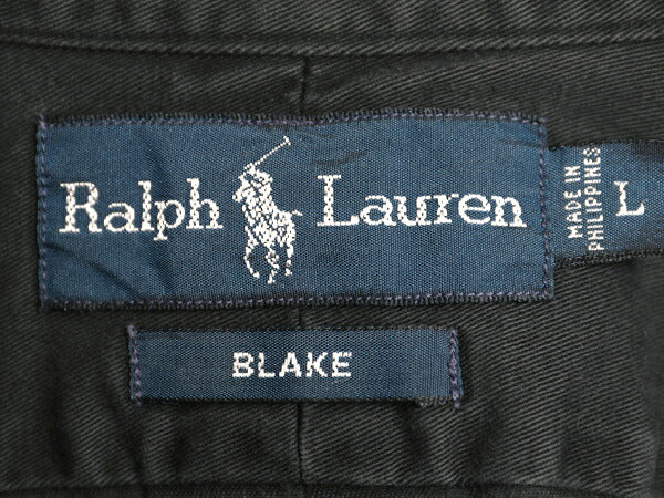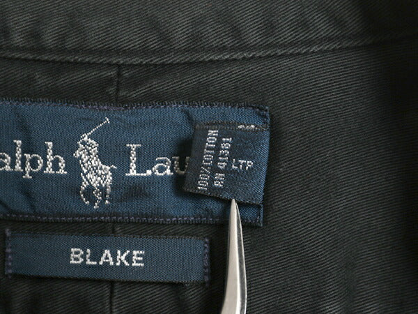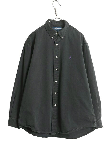 90s ラルフローレン 長袖 ボタンダウン シャツ メンズ L / オールド ポロ 長袖シャツ ワンポイント コットン チノ シンプル ワイシャツ 黒