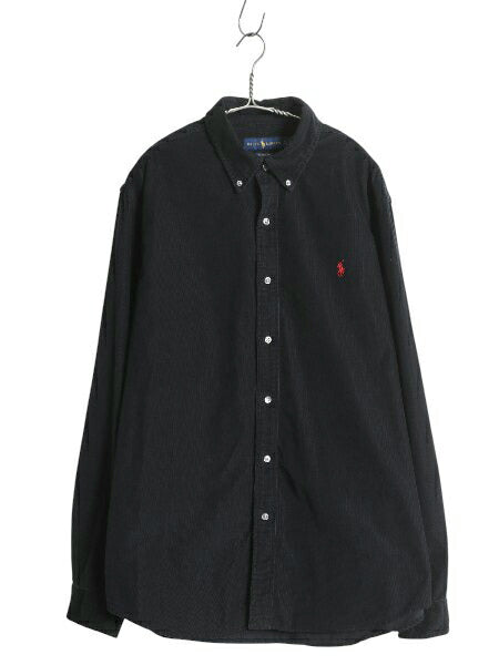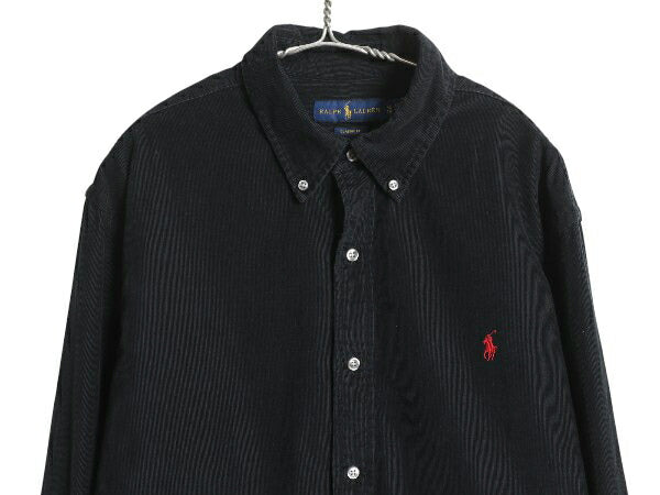ラルフローレン 細畝 コーデュロイ 長袖 ボタンダウン シャツ メンズ XL 古着 ポロ 長袖シャツ カジュアル ワンポイント 大きいサイズ 黒