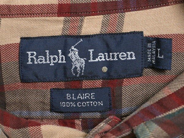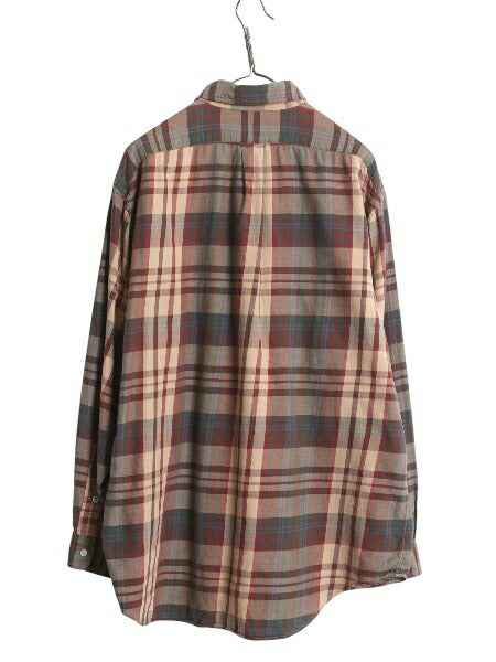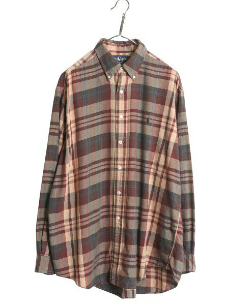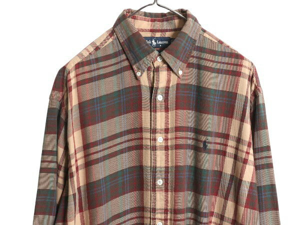 90s ラルフローレン チェック 長袖 ボタンダウン シャツ メンズ L オールド ポロ コットン 長袖シャツ マルチカラー ワンポイント Yシャツ