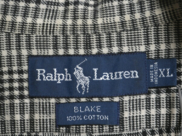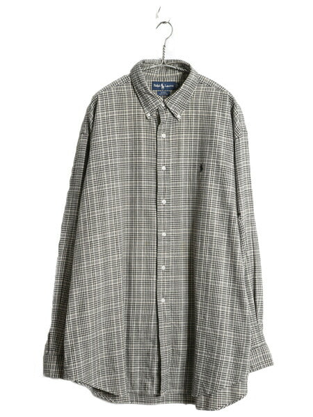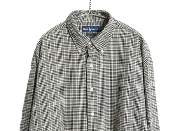 90s ラルフローレン 長袖 ボタンダウン シャツ メンズ XL オールド ポロ グレン チェックゆったり ワイシャツ BD 長袖シャツ 大きいサイズ