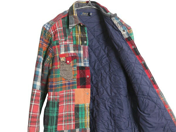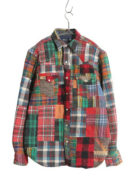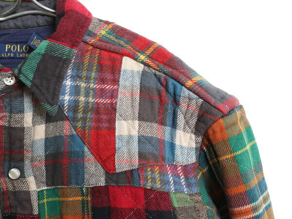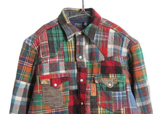 ポロ ラルフローレン パッチワーク ヘビー フランネル ウエスタン シャツ メンズ S / ジャケット チェック 中綿 キルティング ライナー付き