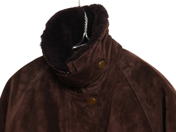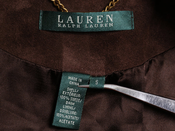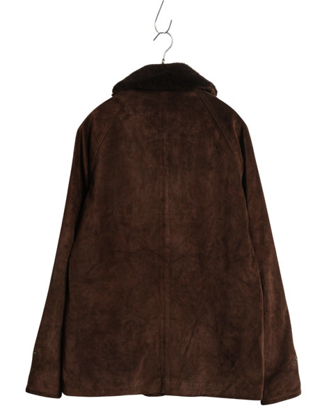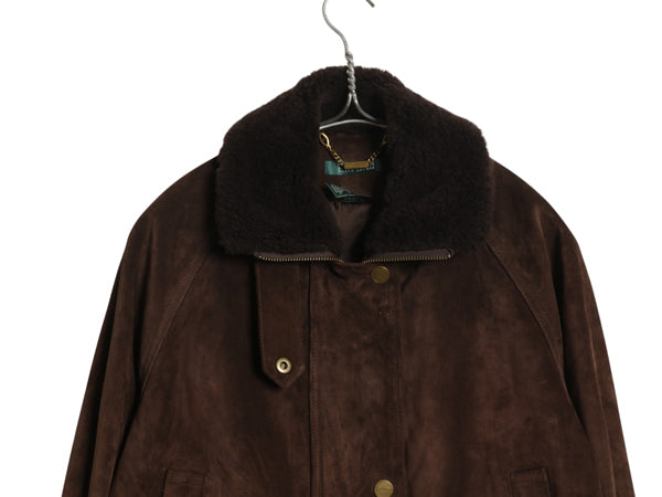 00s ローレン ラルフローレン 本革 スウェード レザー ハーフ コート レディース S / オールド ポロ 革ジャン 襟ボア パイル ジャケット 茶