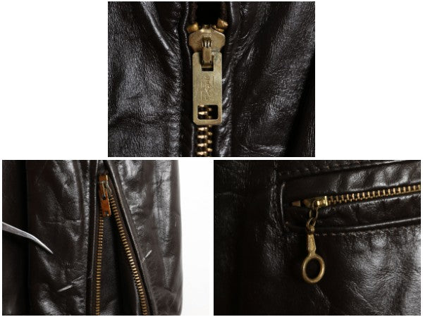 70s USA製 フィデリティ 本革 レザー シングル ライダース ジャケット メンズ XL 程 ヴィンテージ フルジップ 中綿 キルティング 革ジャン