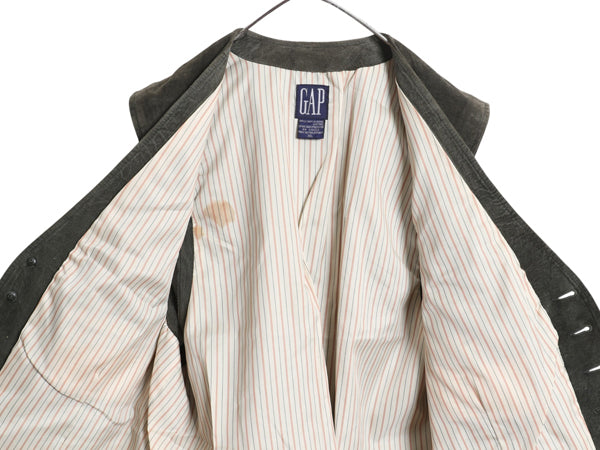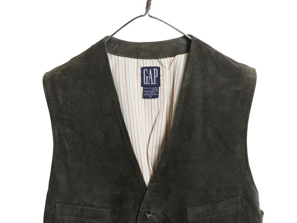 90s オールド ギャップ 本革 スウェード レザー テーラード ベスト メンズ XL オールレザー ライナー付き ジレ 重ね着 前開き 大きいサイズ