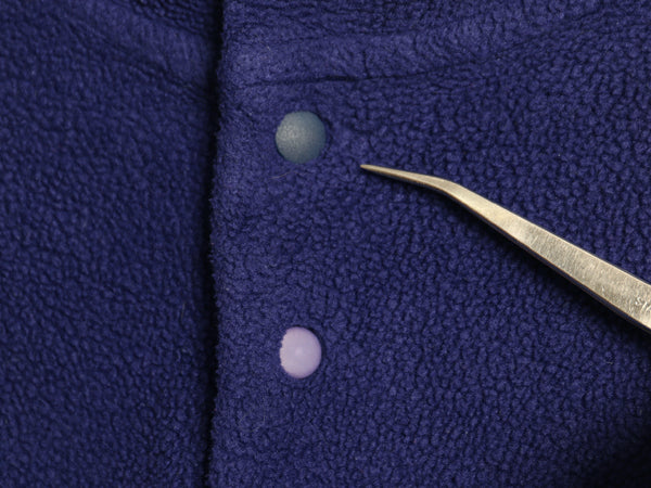 第2スナップボタンの表面のプラスチック部分が変えられています。