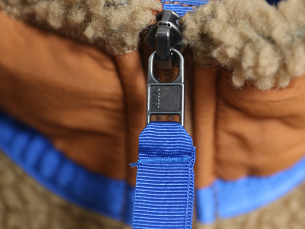 内側にウインドフラップを備えたフルレングスのフロントジッパー