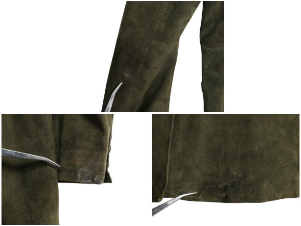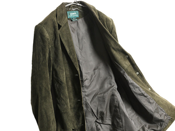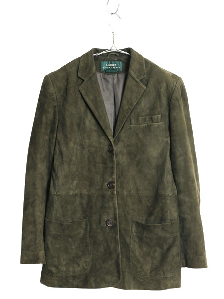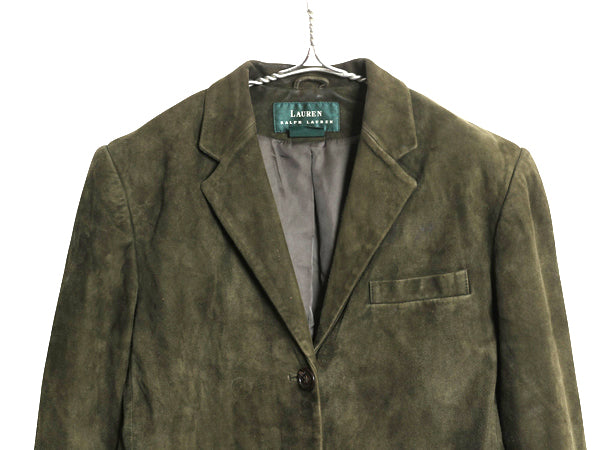 00s ローレン ラルフローレン 本革 ヌバック レザー テーラード ジャケット レディース S 古着 オールド ポロ ブレザー 革ジャン オリーブ