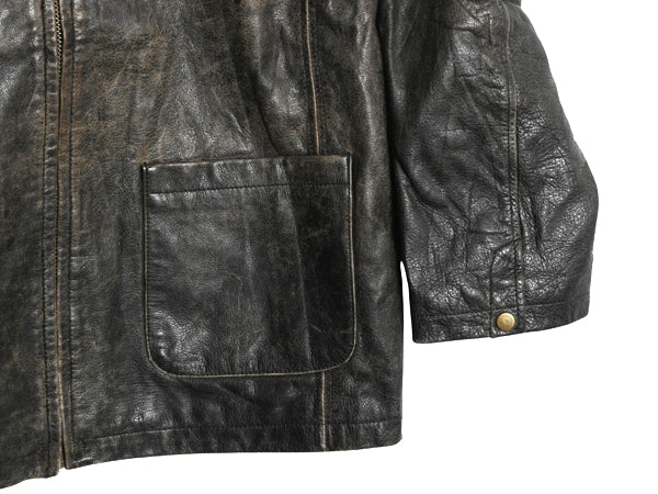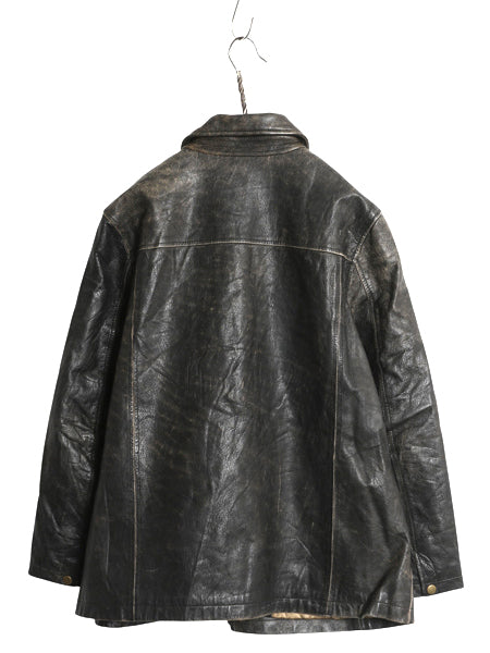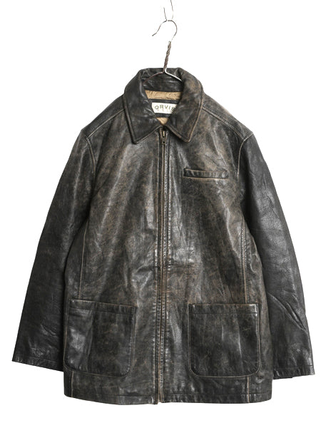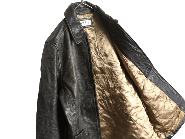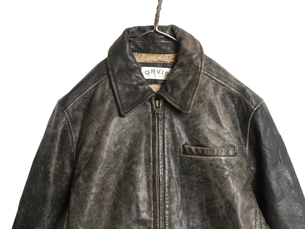 00s オービス フルジップ 本革 レザー ジャケット メンズ M 革ジャン ジャンパー シングル ライダース オールレザー 中綿 キルティング 黒