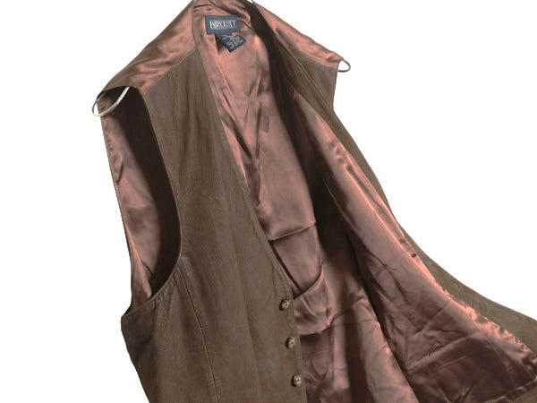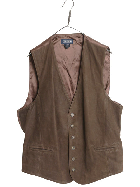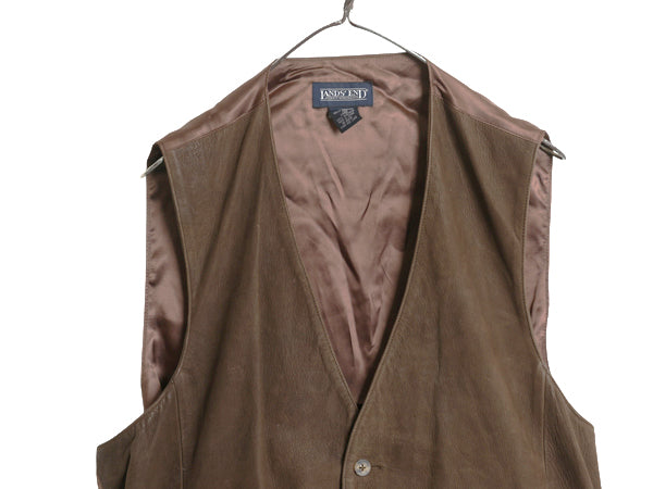 90s ランズエンド 本革 ヌバック レザー テーラード ベスト メンズ L / オールド ジレ 重ね着 前開き シンチバック 付き シンプル 無地 茶