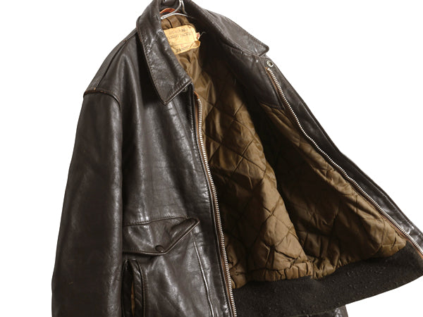 70s ショット A-2 タイプ 本革 レザー フライト ジャケット メンズ L / ヴィンテージ 674 中綿 キルティング 革ジャン ボンバー ブルゾン