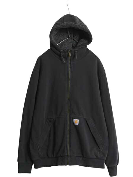 US企画 カーハート フルジップ スウェット パーカー メンズ L / 裏 ボア パイル フリース ライナー付き ジャケット フード ハイネック 黒