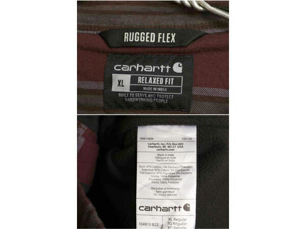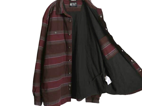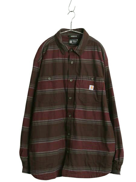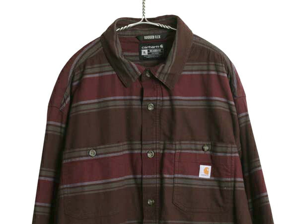 US企画 カーハート ボーダー フランネル シャツ ジャケット メンズ XL ワーク フリース ライナー付き ネルシャツ ストレッチ 大きいサイズ