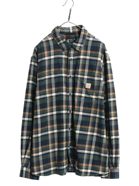 US企画 カーハート チェック フランネル シャツ メンズ XL ワーク ネルシャツ ストレッチ コットン 長袖シャツ マルチカラー 大きいサイズ