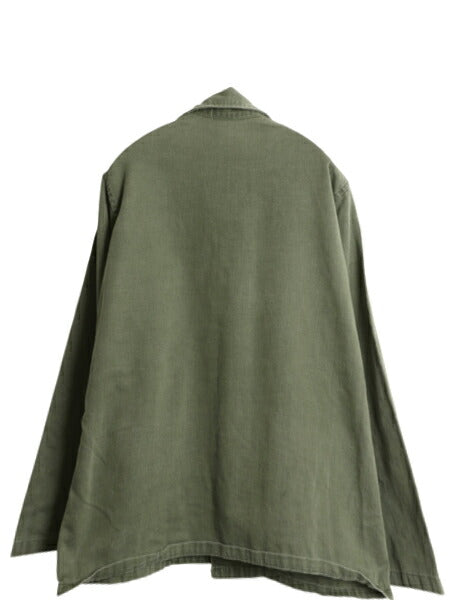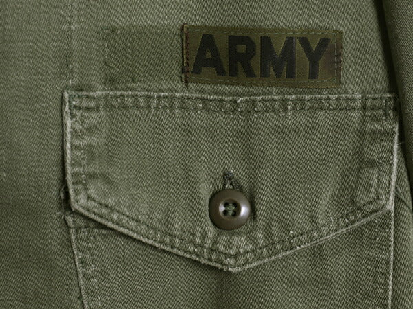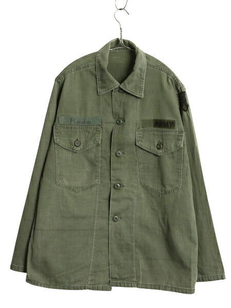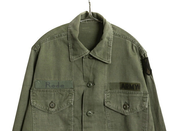 60s 70s 民間 コットン サテン ユーティリティ シャツ メンズ M 古着 ヴィンテージ ミリタリー アーミー 筒袖 OG107 長袖シャツ USARMY OD