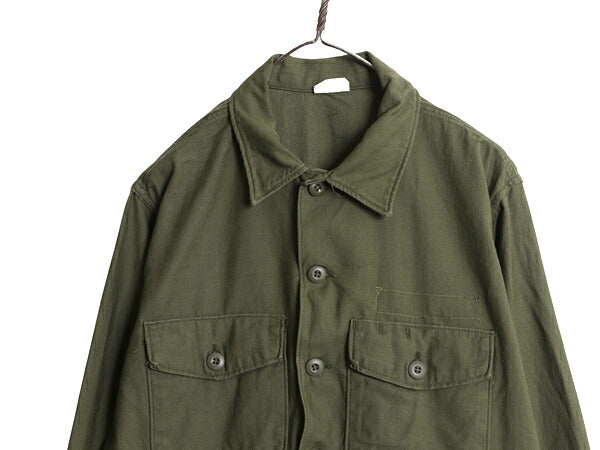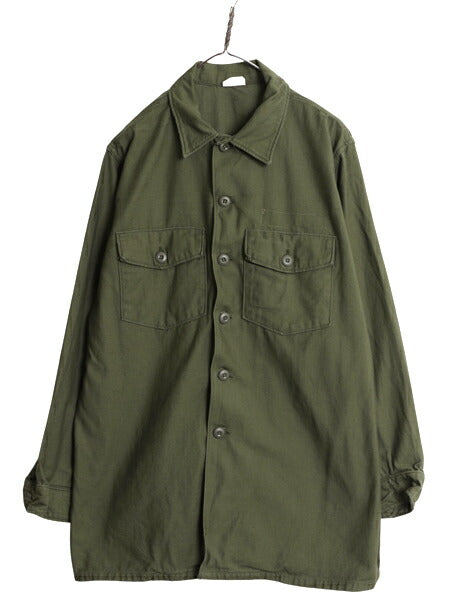 60s 米軍実物 US ARMY コットン サテン ユーティリティ シャツ メンズ XL 程 67年製 ヴィンテージ ミリタリー アーミー OG107 シャツ袖 2nd
