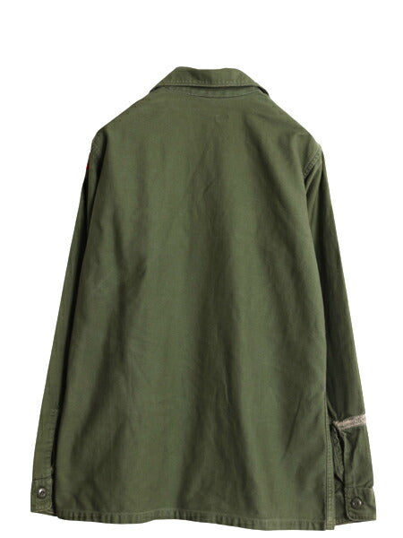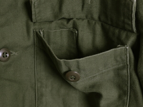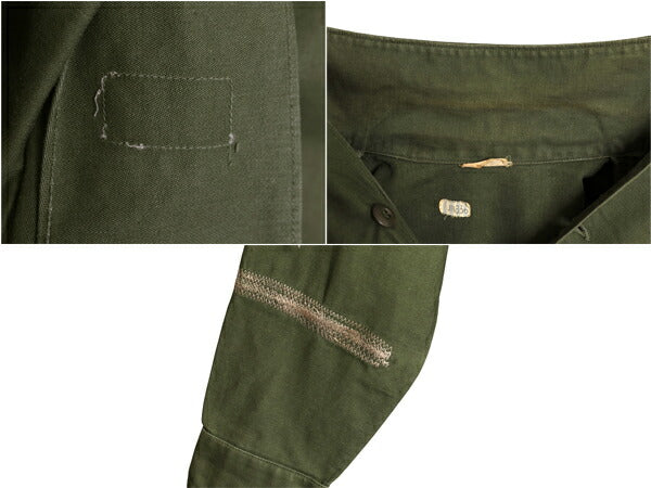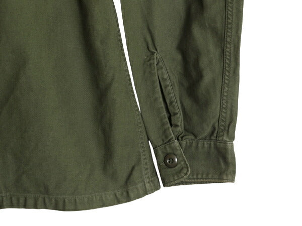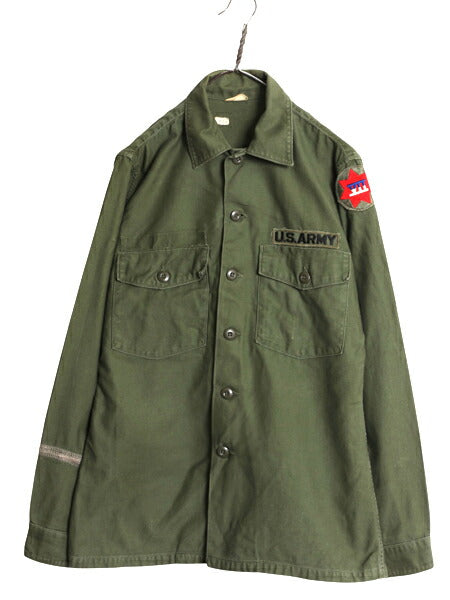 70s 米軍実物 US ARMY コットン サテン ユーティリティ シャツ メンズ M 程 ヴィンテージ ミリタリー アーミー OG107 シャツ袖 3rd カーキ