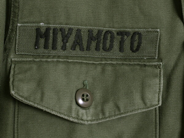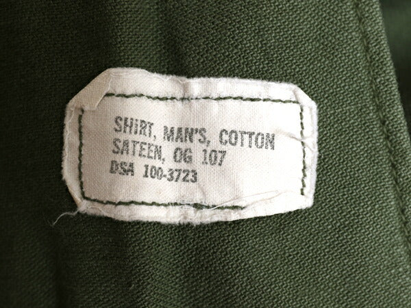 60s 米軍実物 US ARMY コットン サテン ユーティリティ シャツ メンズ S 程 ヴィンテージ アーミー OG107 フルパッチ シャツ袖 2nd カーキ