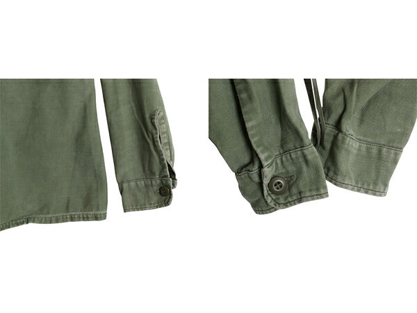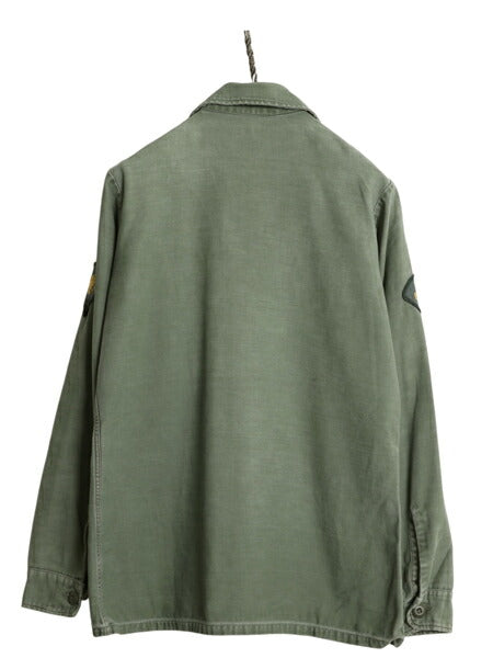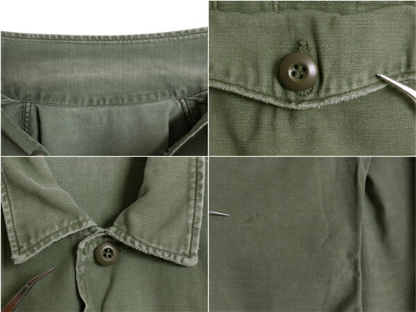 70s 米軍実物 US ARMY コットン サテン ユーティリティ シャツ メンズ S 程 ヴィンテージ ミリタリー アーミー OG107 シャツ袖 3rd カーキ
