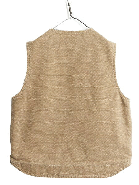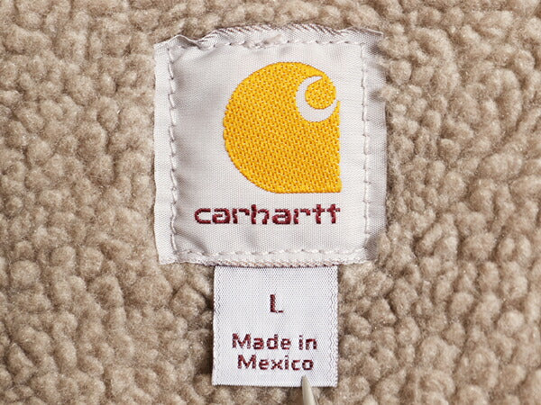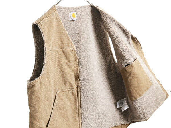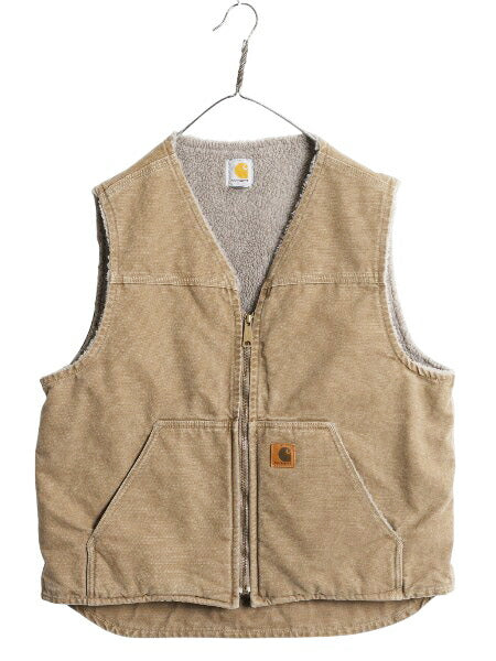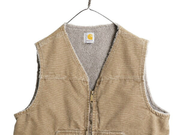US企画 カーハート ダック ベスト メンズ L 裏 ボア パイル フリース 重ね着 前開き フルジップ ワーク 廃盤 ワンポイント ノースリーブ 茶