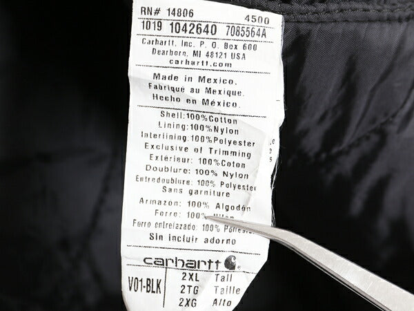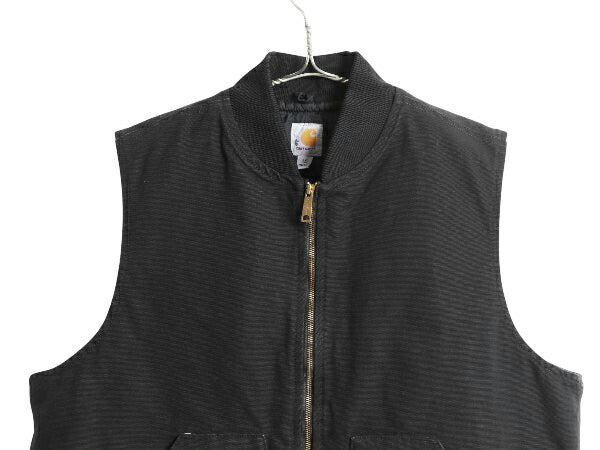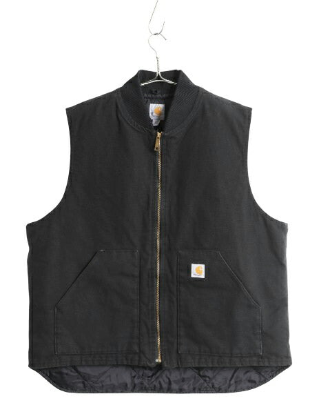 US企画 カーハート 中綿 ダック ベスト メンズ XXL / ナイロン キルティング ライナー フルジップ 重ね着 前開き ワーク 大きいサイズ 黒