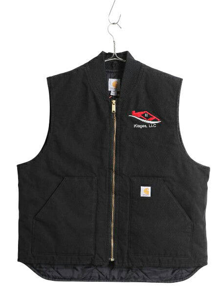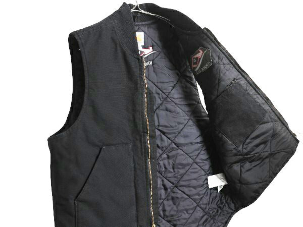 US企画 カーハート 中綿 ダック ベスト メンズ XL ナイロン キルティング ライナー フルジップ 重ね着 前開き ワーク 大きいサイズ 黒 企業