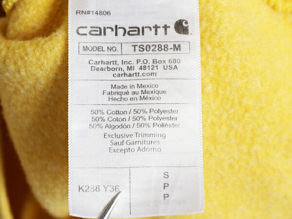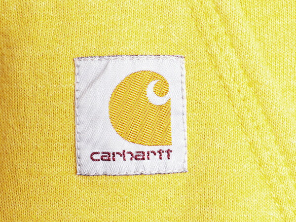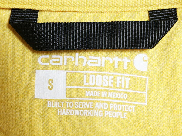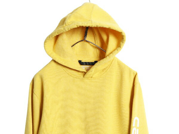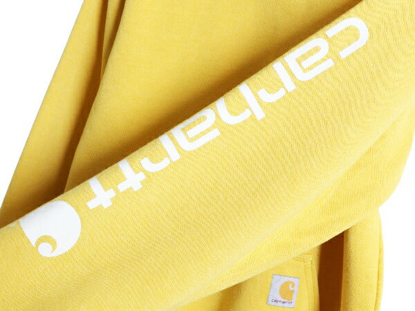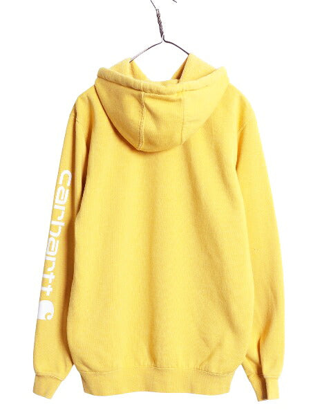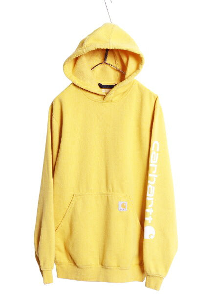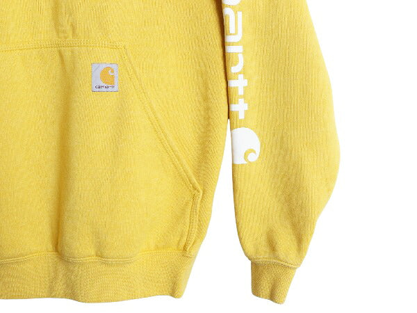 カーハート 袖 プリント スウェット フード パーカー メンズ S / 古着 トレーナー 裏起毛 プルオーバー ミドルウェイト シンプル イエロー