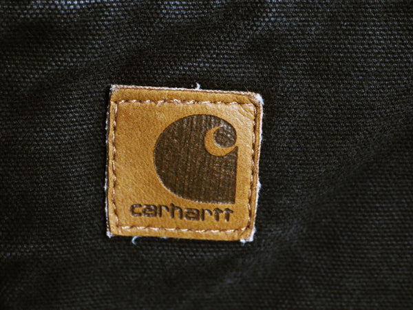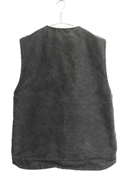 US企画 カーハート ダック ベスト メンズ L程 古着 裏 ボア パイル フリース 重ね着 フルジップ ワーク 廃盤 ワンポイント 大きいサイズ 黒