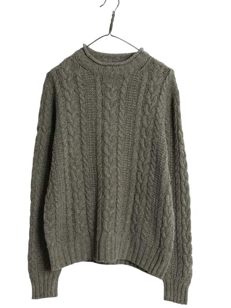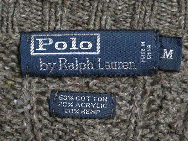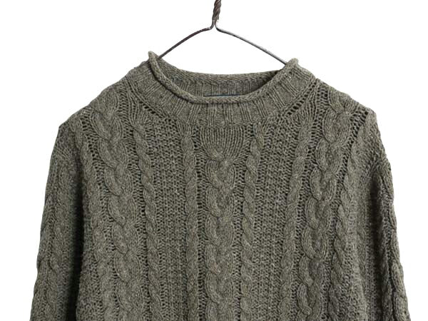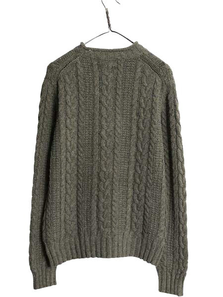 00s ポロ ラルフローレン モックネック ニット セーター メンズ M オールド ケーブル ハイネック コットン ヘンプ 無地 ポニー無し カーキ
