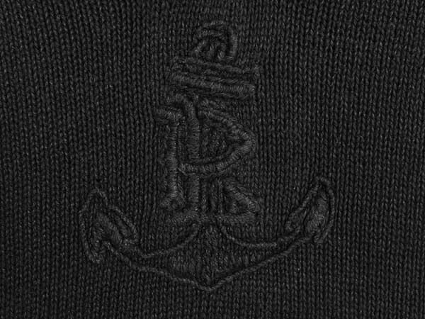 胸に アンカー (イカリ)モチーフのロゴの編み込み