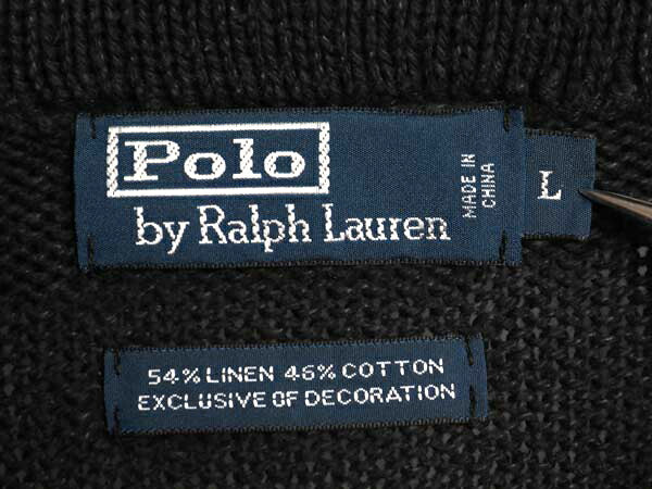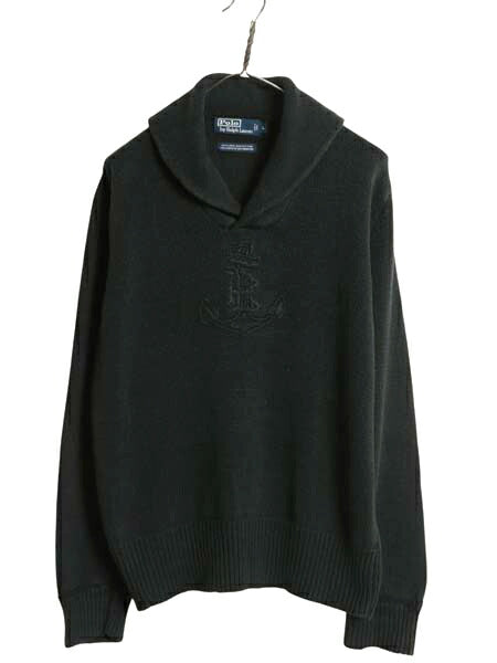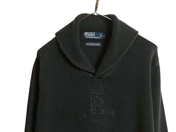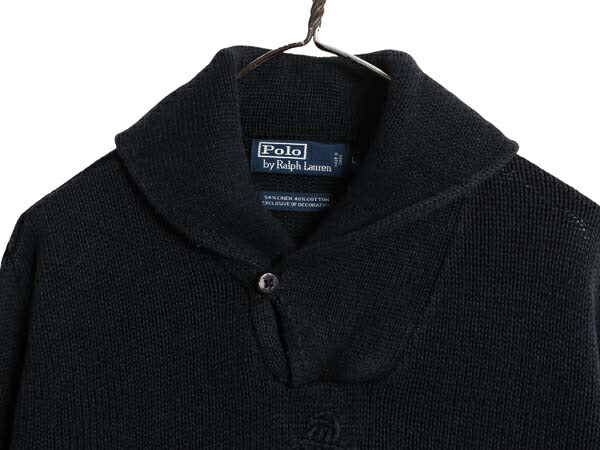 00s ポロ ラルフローレン ショールカラー ニット セーター メンズ L 古着 オールド コットン リネン リブ編み 長袖ニット プルオーバー 紺
