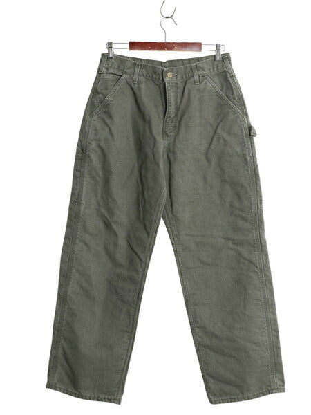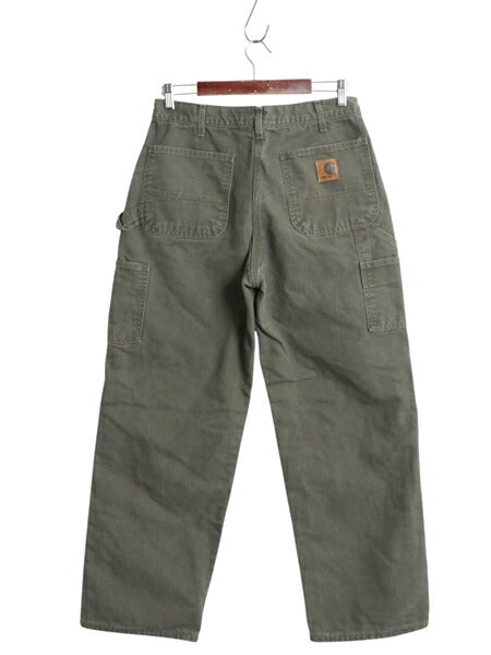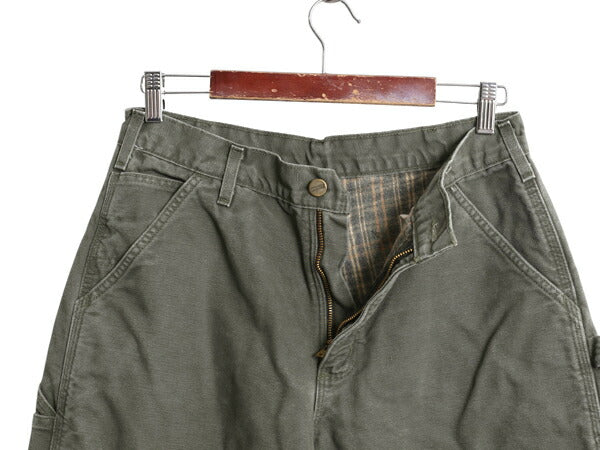 00s USA製 US企画 カーハート ウォッシュド ダック ペインター パンツ メンズ 32 30 オールド フランネル ライナー付き モス グリーン MOS