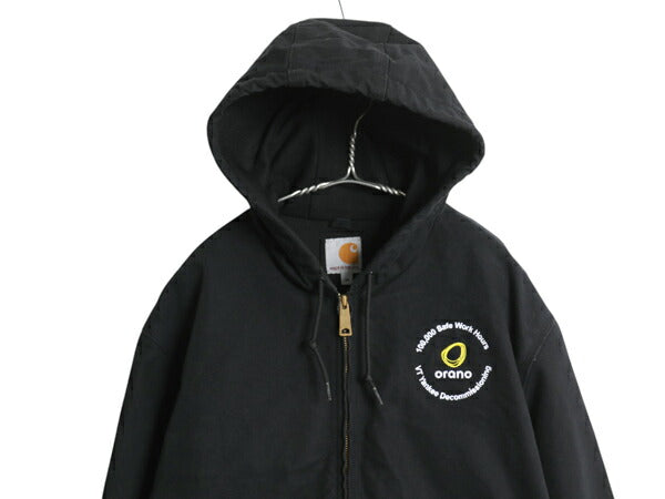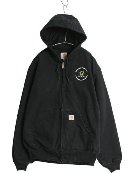 USA製 カーハート アクティブ ジャケット メンズ M / 古着 ワーク ダック フード パーカー メッシュ ライナー フルジップ ブルゾン 企業 黒