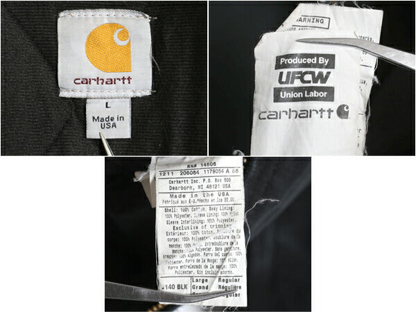 USA製 US企画 カーハート アクティブ ジャケット メンズ L / ワーク ダック パーカー 中綿 キルティング ライナー フルジップ ブルゾン 黒