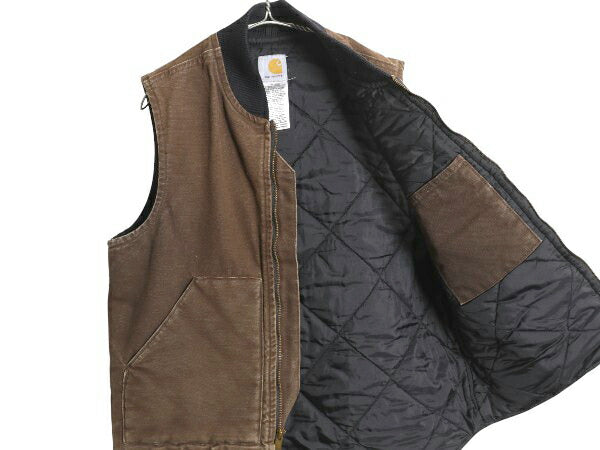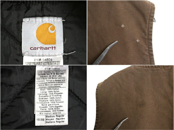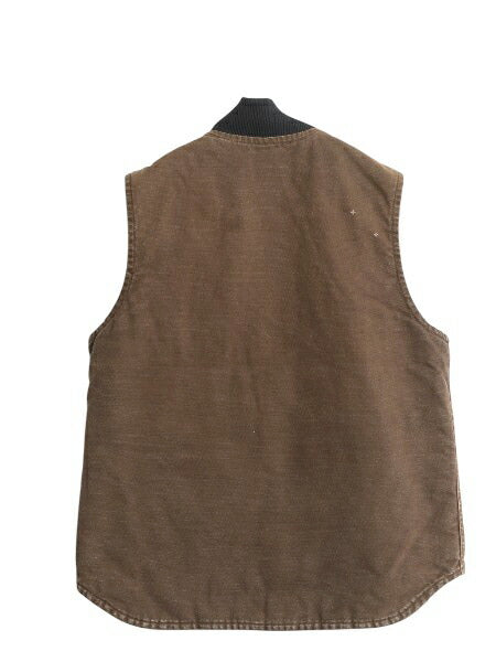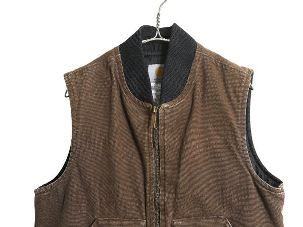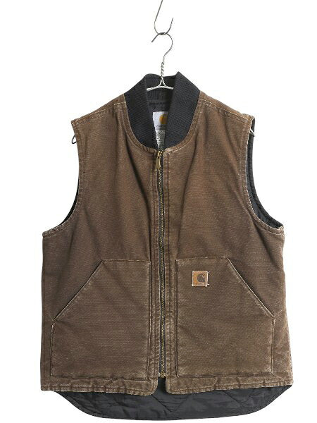 US企画 カーハート 中綿 ダック ベスト メンズ M / 古着 フルジップ ナイロン キルティング ライナー 重ね着 前開き 廃盤 ワーク ブラウン