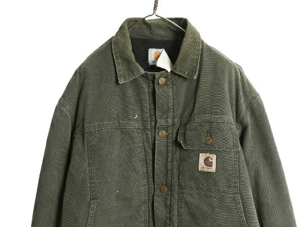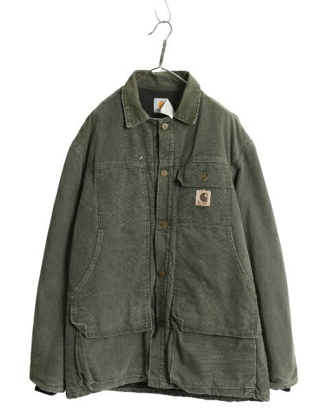 90s USA製 カーハート ダック フィールド コート メンズ L オールド 中綿 キルティング ライナー カバーオール ジャケット ブルゾン ワーク