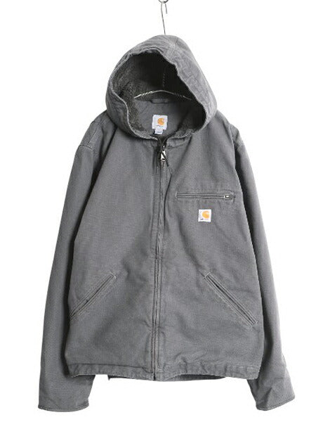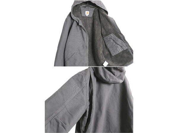 US企画 カーハート ダック シエラ ジャケット メンズ L 古着 ワーク フルジップ フード パーカー 裏 ボア パイル フリース ブルゾン グレー