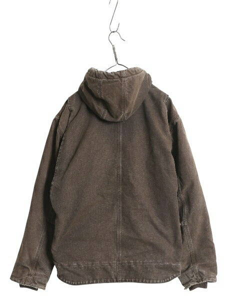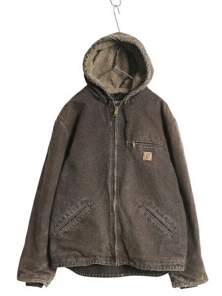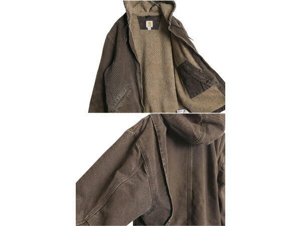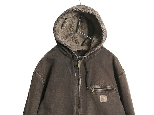 US企画 カーハート ダック シエラ ジャケット メンズ L / ワーク フルジップ フード パーカー 裏 ボア パイル フリース ブルゾン ブラウン