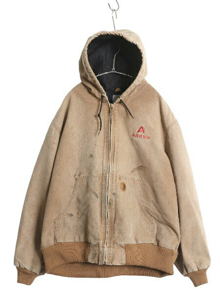 雰囲気系 US企画 カーハート アクティブ ジャケット メンズ XL / ダック フルジップ パーカー 中綿 キルティング ライナー ワーク 企業 茶