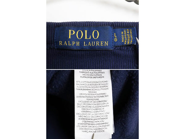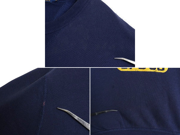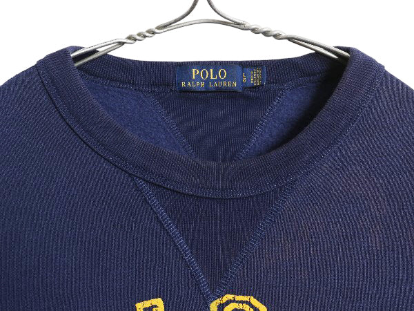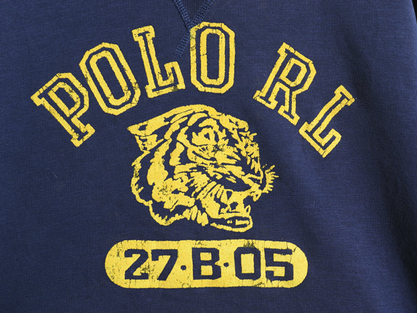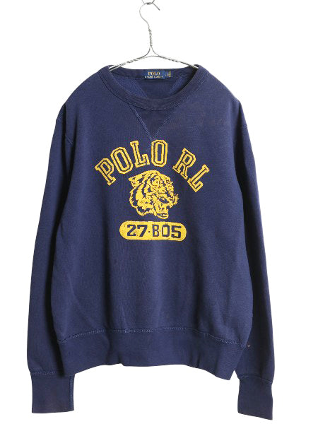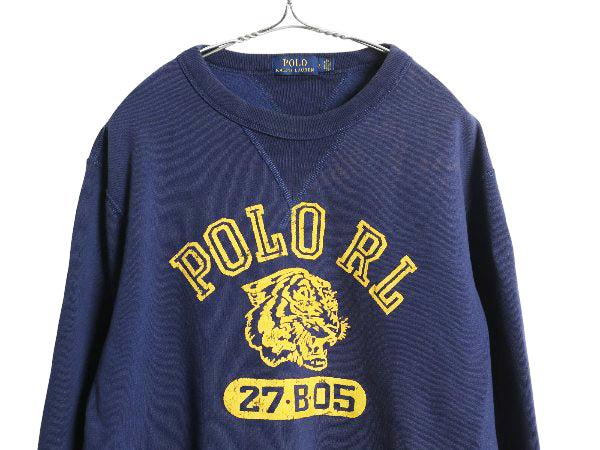 ポロ ラルフローレン 両V 3段 フロッキー プリント スウェット メンズ L / 古着 ヴィンテージ モデル トレーナー タイガー 裏起毛 ネイビー