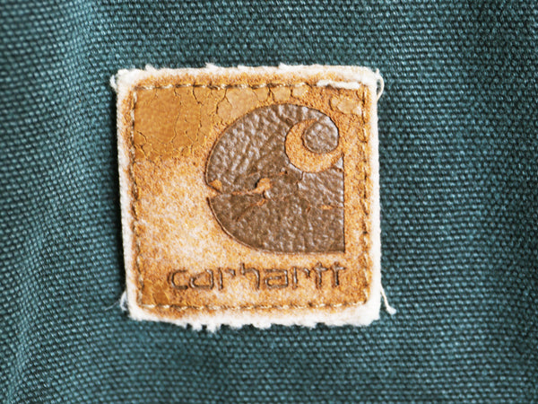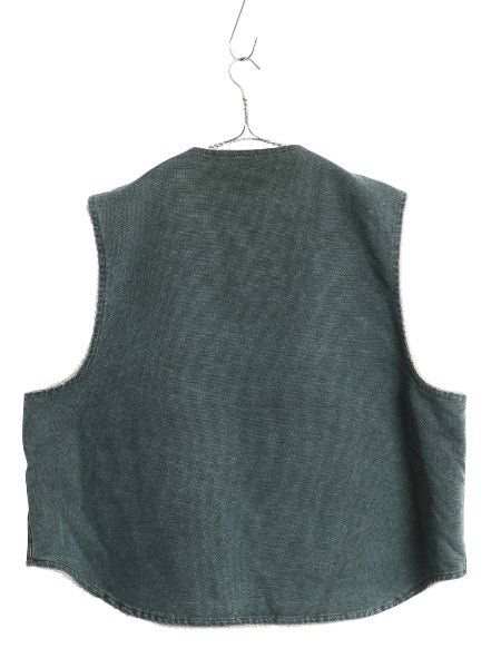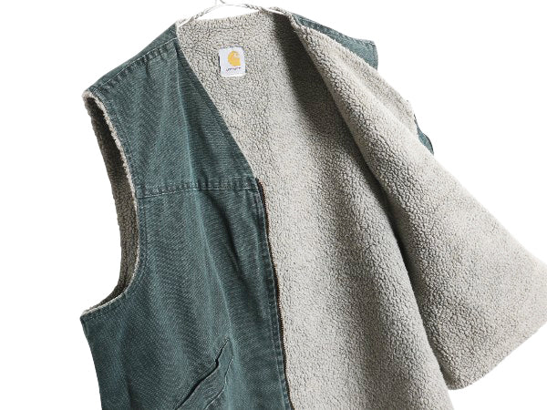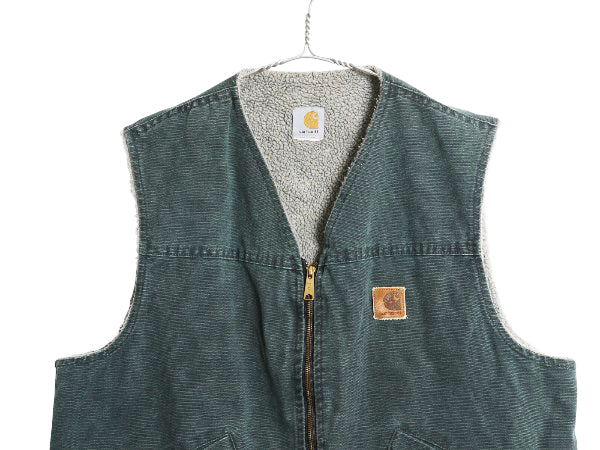 00s カーハート ダック ベスト メンズ XL 程 オールド 裏 ボア パイル フリース 重ね着 前開き フルジップ 大きいサイズ ハンター グリーン