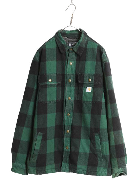 US企画 カーハート チェック 長袖 フランネル シャツ ジャケット メンズ L / 裏 ボア パイル フリース ライナー付き 長袖シャツ ネルシャツ