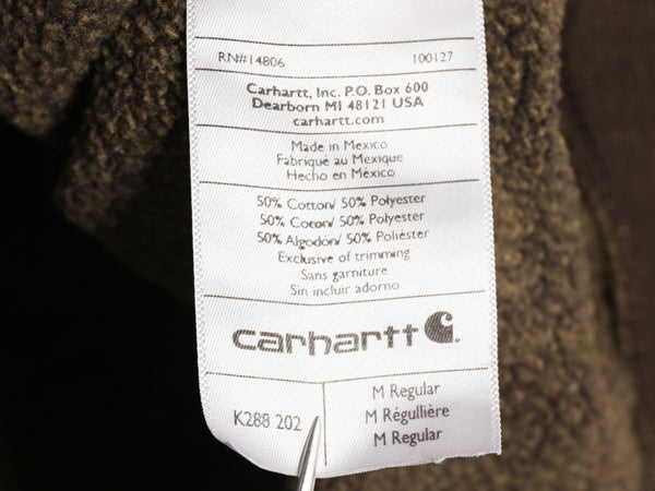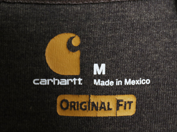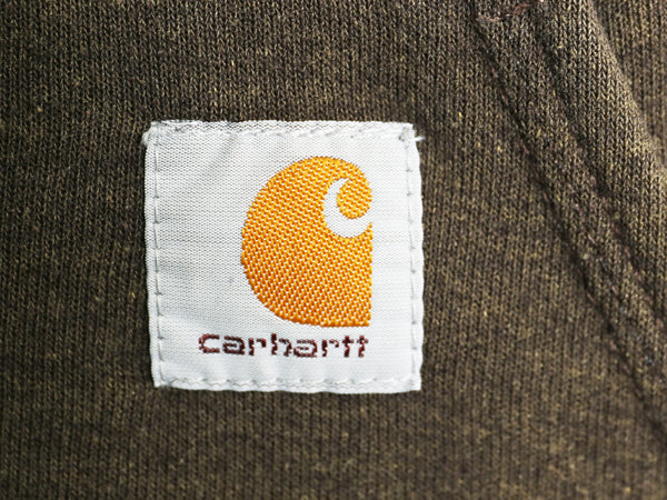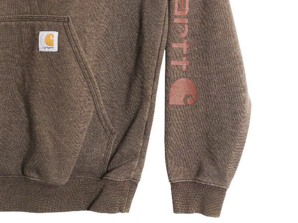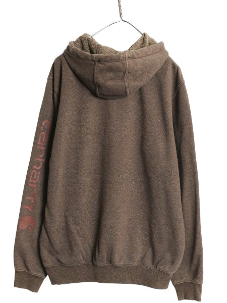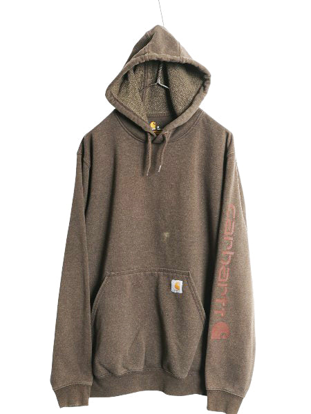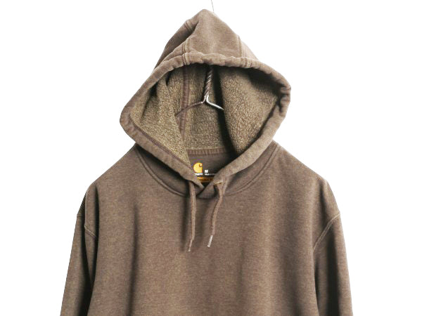 カーハート スウェット フード パーカー メンズ M / 古着 袖 プリント トレーナー 裏起毛 プルオーバー ミドルウェイト シンプル ブラウン