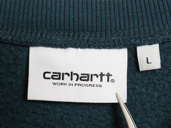 カーハート WIP ワンポイント スウェット メンズ L / 裏起毛 ヘビーウェイト スエット トレーナー クルーネック シンプル ブルー グリーン