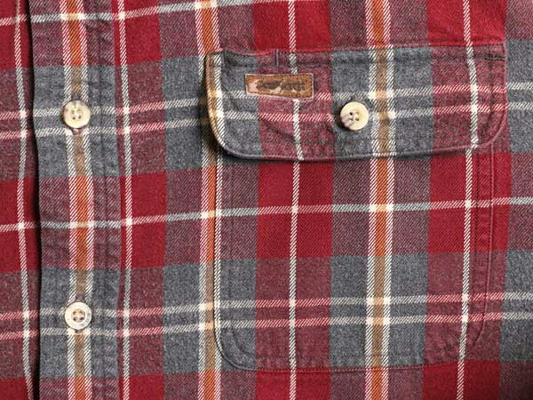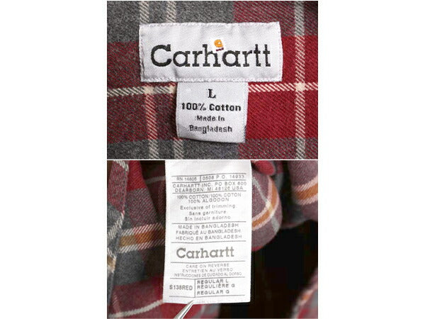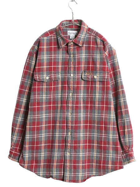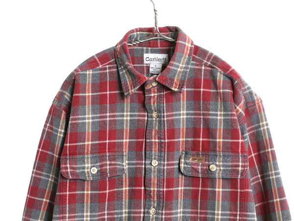 US企画 カーハート チェック ヘビー フランネル シャツ メンズ L ワーク ネルシャツ コットン 長袖シャツ ワンポイント マルチカラー 廃盤