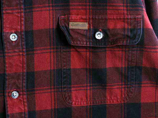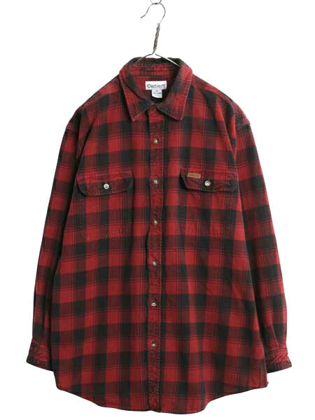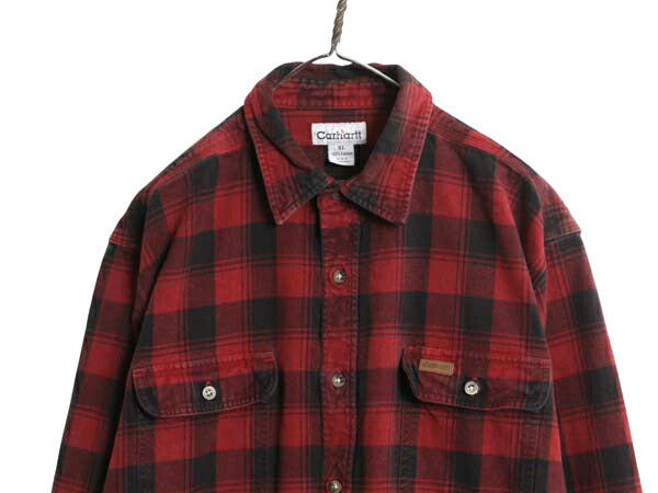 US企画 カーハート チェック ヘビー フランネル シャツ メンズ XL ネルシャツ コットン 長袖シャツ 大きいサイズ マルチカラー 廃盤 赤 黒