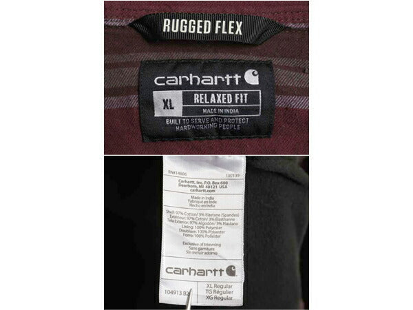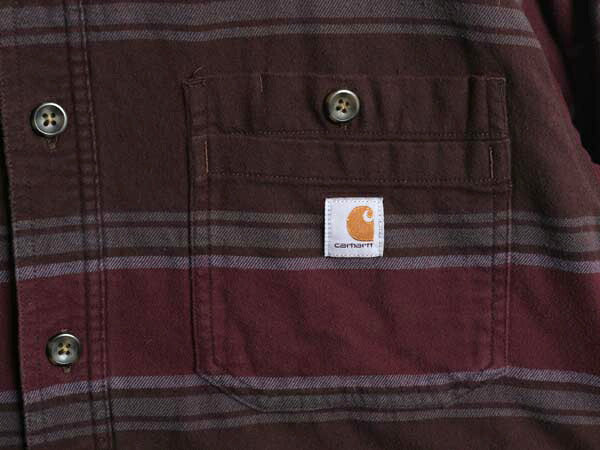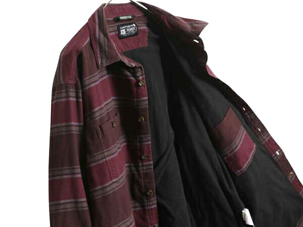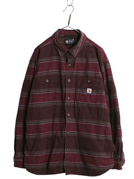 US企画 カーハート ボーダー フランネル シャツ ジャケット メンズ XL フリース ライナー付き ストレッチ ネルシャツ 大きいサイズ ワーク