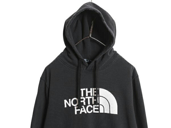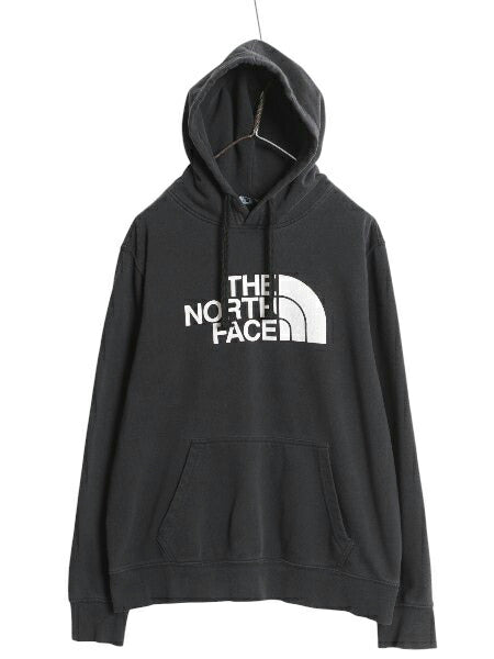 ノースフェイス プリント スウェット フード パーカー メンズ М 古着 プルオーバー 裏起毛 トレーナー アウトドア 薄手 ブラック シンプル