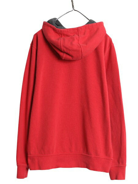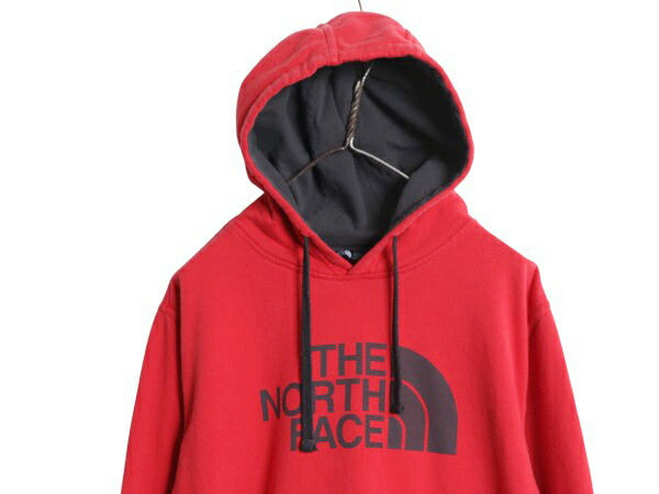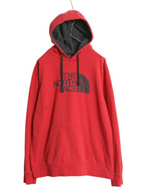 ノースフェイス プリント スウェット フード パーカー メンズ L / 裏起毛 トレーナー プルオーバー アウトドア ツートン シンプル 赤 濃灰